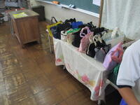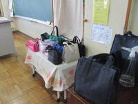 東っ子たちは登校して教室に入ると、それぞれの教室で決まられた場所にお弁当を置いていました。