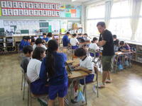 朝の低学年昇降口では「おはよーございまーす!」のあいさつが、そして高学年昇降口からは「グッドモーニング!」や「おはようございます!」の元気なあいさつが響いています。