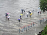 傘の色もカラフルで、その種類も一人一人いろいろです。