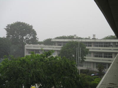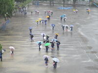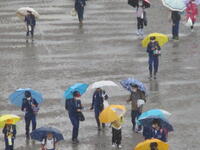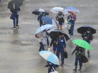 東っ子たちは傘をさしたり長靴をはいたりしながら、雨にも負けずに、今日も元気に登校してきました。