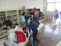 1年生と2年生の東っ子たちが、コースごとに分かれて「さよーなら!」と元気にあいさつしながら下校して行きました。
