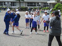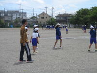 東っ子たちと一緒に走っている先生もいます。
