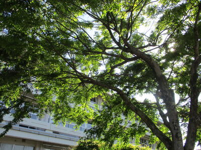 新緑が朝の光に揺れて輝いていてきれいです。