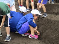 雨もあがり雲は多めですが、少し晴れ間も出ていて活動しやすい天気になっています。5年生の東っ子たちは、一生懸命に、そして楽しそうに農園を耕していました。
