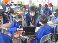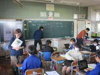 5年1組では、英語専科の先生、AET、そして今日は英語指導力向上専門員の先生も入って「外国語」の授業でした。