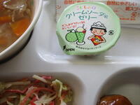 今日の真岡東小学校の給食は「子どもの日給食」で、メニューはつくねの照り焼き、ごぼうサラダ、のっぺい汁、クリームソーダ風ゼリー、ごはん、牛乳で、657Kcal(中学年)でした。