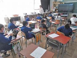 <6年2組> 理科の授業におじゃましました。大地のつくりについて学習しており、地震や火山についてタブレットを使って詳しく調べていました。日本には火山が多く、地震もたくさん起きています。どんな関係があるのでしょう?