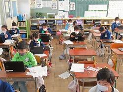 <4年3組> 総合的な学習の時間の授業におじゃましました。キャリア教育の一環で将来のなりたい職業について、タブレット端末を使って調べ、まとめていました。まとめた文章は、オンラインで提出されます。