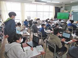 <6年2組> 道徳の授業におじゃましました。中堅教員研修の一環で実施しました。「ロレンゾの友達」という資料を使って、真の友情について考えました。ICT機器を活用した話し合いの授業で、全員の意見を共有でき、とても参考になる授業でした。また、挙手をして意見を述べるのが苦手な子も、書き込むことで授業に入り込んでいました。