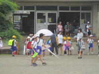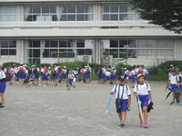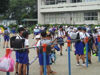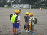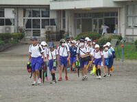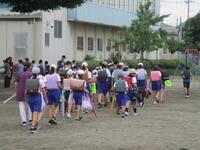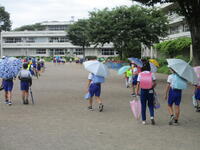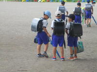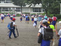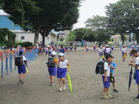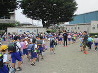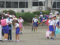 校庭に登下校班ごとに並んで、元気に「気を付けて帰りましょう!さようなら!」、「さようなら!」とあいさつしてそれぞれの登下校班ごとに下校して行きました。