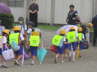 東っ子たちは、登下校班の班長の「気を付けて帰りましょう!さようなら!」のあいさつに続いて全員で「さようなら!」と元気にあいさつして、それぞれの登下校班ごとに下校して行きました。