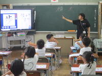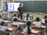 電子黒板を使って、"歩"と"顔"という漢字の練習をしていました。2年生の東っ子たちは自分の手を目の前で動かして"空書き"しながら一生懸命に学習に取り組んでいました。