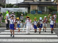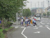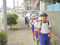 東っ子たちは今日も元気にあいさつしながら登下校班ごとにきちんと並んで登校してきました。