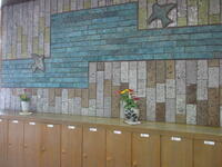 3連休明けの真岡東小学校の玄関には、紫陽花に代わって新しい花が飾られていました。