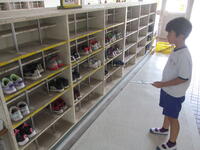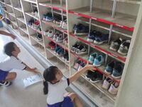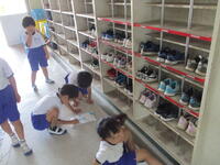 一つ一つの靴の置き方を確認してきれいに整頓していました。1年生の靴箱は今日もきれいに「履き物を揃える」ことができています。