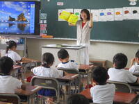 今日の2校時目は、1年2組はJTE(日本人英語指導助手)の先生と担任の先生による「外国語活動」の授業をしていました。