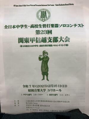 全日本中学生関東甲信越支部大会管打楽器ソロコンテスト出場