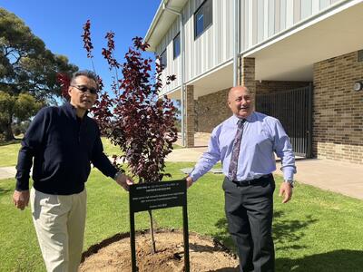 真岡中学校とオールトラリンドシニアハイスクールが姉妹校となって20年が経ちました。20周年を記念し、2人の校長先生によって、日本の春を告げる桜の木がオーストラリンド校に植えられました。10月30日が記念日です。