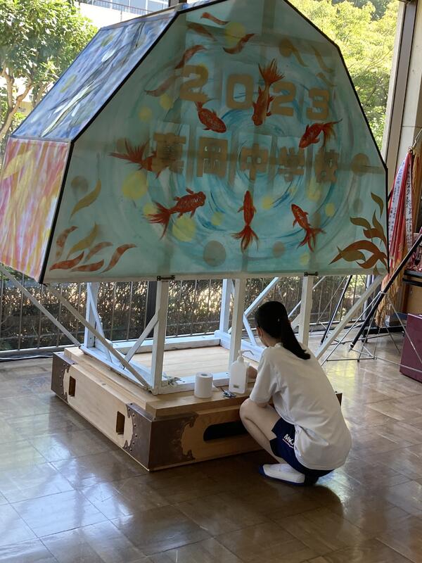 柔道部、剣道部、卓球部の皆さん、後片付けありがとうございます。美術部制作の御輿は玄関にあります。ご来校の際はぜひご覧ください。