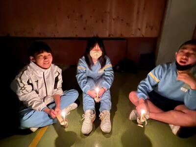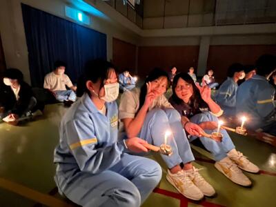 美味しかった夕食の後は、体育館にてキャンドルファイヤーの時間です!