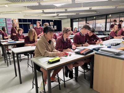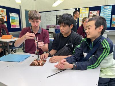 地震の授業です。30cmの高さのものつくり、30秒間揺れに耐えられたら合格です!
