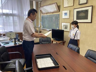 剣道部、男子団体優勝です。女子個人戦は、2名県大会出場を決めました。