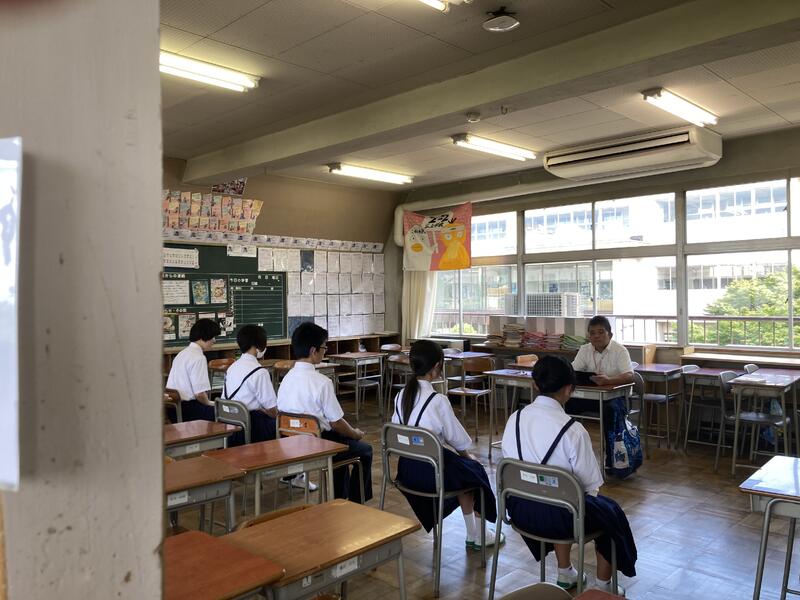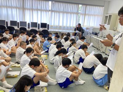 本校のALTのラン先生の授業風景です。英語の授業以外に、行事のカメラマンや駐車場整理も行ってくれるスーパーALTです。