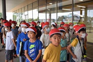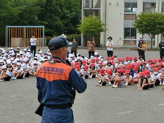 6月26日に火災の避難訓練を行いました。避難の方法について消防署の方から話を聞いた後、6年生は煙体験を行いました。