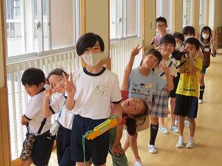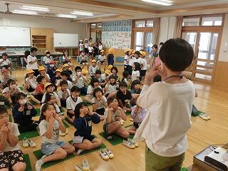 6月15日に、「県民の日 児童集会」を行いました。約3年半ぶりに体育館に全校生が集まり、開会式を行ったから、縦割り班ごとに高学年児童が企画したゲームを楽しみました。