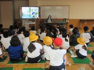 22日はエプロンシアターがあり、29日は大型絵本の読み聞かせがありました。