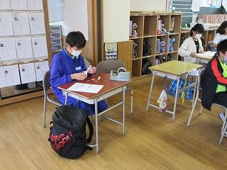 5年生は先週から今週にかけて、家庭科で裁縫の学習が始まりました。日頃触れる機会が少ない、針と糸に児童は戸惑っていましたが、ボランティアの方のサポートのおかげでスムーズに学習を進めることができました。