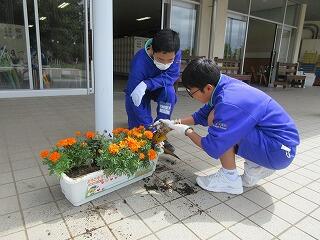 5月29日から5月31日の3日間、本校の卒業生であり、現在、真岡東中学校の2年生6名がマイチャレンジ体験活動(職業体験)で真岡小学校にやってきました。授業中に声を掛けて回ったり、昼休みに外で遊んだりすることはもちろん、小学生の時には分からなかった、給食を配膳するための準備やプランターの片付け等の仕事にも積極的に取り組んでいました。
