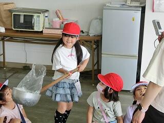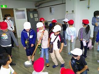 毎日約6000人分の給食を作っている給食センターでは、調理器具のサイズも家庭用とは大違いです。児童は大きなお玉やしゃもじ、ざるに大興奮でした。また、調理員さんが一生懸命に給食を作っている姿を見て、苦手なものが給食に出ても、頑張って食べてみようと思ったようです。