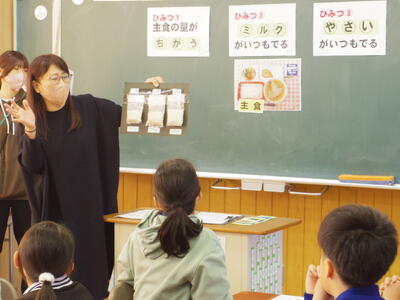 本日は4年生「ひみつがかくされた給食をのこさず食べよう!」です。