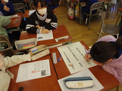 その秘密をグループで考え、発表です。その後、栄養士の先生から、体の大きさに応じた米の量の違いや骨ができる時期カルシウムを取ることが大切であることなどの話を聞きました。最後に、秘密がたくさん隠された給食を残さず食べるために、これから自分はどんなことに気を付けるか一人一人しっかりと書いていました。