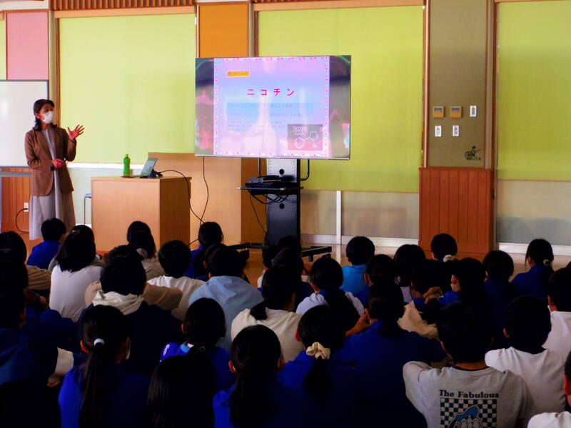 1年生 あさごはんのはなし、2年生 くすりのはなし、3年生 むし歯について、4年生 生活習慣の話、5年生歯肉の病気、6年生 たばこと健康