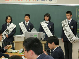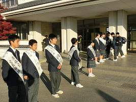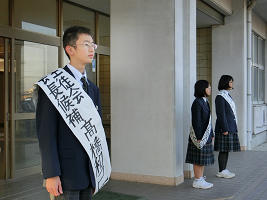 訪問団代表で校長先生と鈴木生徒会長があいさつを行いました。