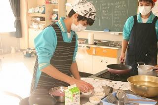 給食前に1年生が調理実習で作った「ケーキ」を披露してくれました。おいしそう!