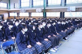 学習については、私自身が3年生の6月の実力テストで「0点」をとり、以後数学に苦しめられた経験をもとに、「わからなくなったところまで、勇気をもって戻り、学び直してみよう」と呼びかけました。そのチャンスは、この春休みだと思います。「さらに一歩先の自分」を目指すためにも、時には「後戻り」も必要です。みなさんの飛躍を期待しています。(校長)