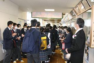 今日30日(金)は、本校を去る先生方の「離任式」がありました。卒業生のみなさんも見送りに来ていただき先生方との別れを惜しみました。