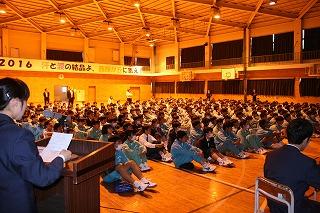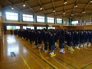 体育館に整列した全校生徒。1年生側からの写真です。