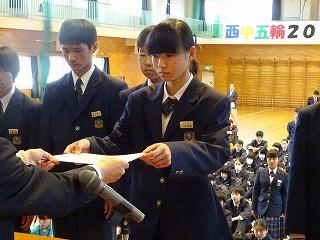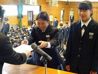 12日、第1学期学級委員の任命が行われました。各学級の代表として、堂々とした返事と