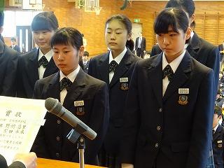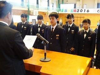 態度で校長先生より任命書を受け取りました。