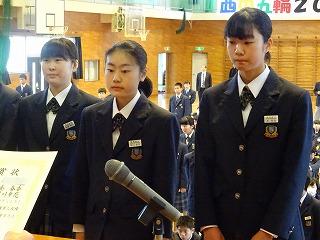 始めに、生徒会副会長の杉本絵梨菜さんから「歓迎のあいさつ」が行われ、次いで生徒会