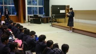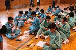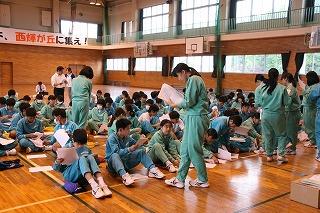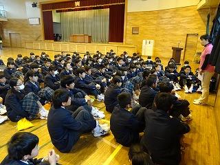 <国際交流委員会主催 正心中訪問説明会>昼休み・体育館で