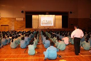 12日、全校生を対象に、交通安全教室を開きました。講師として、真岡警察署職員の方に