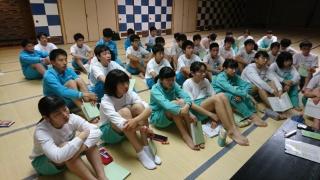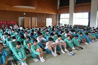 朝会の後の学年集会の様子です。(2年生)