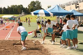 走り幅跳びの砂場ならし。砂が締まっているとケガが起きやすいです。