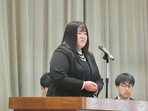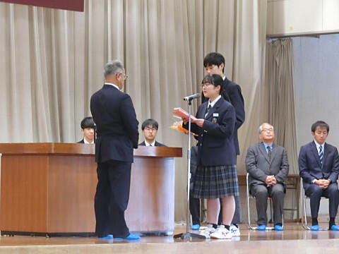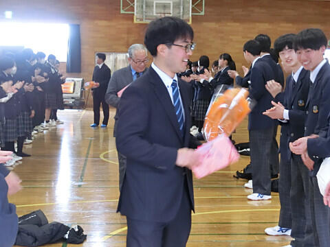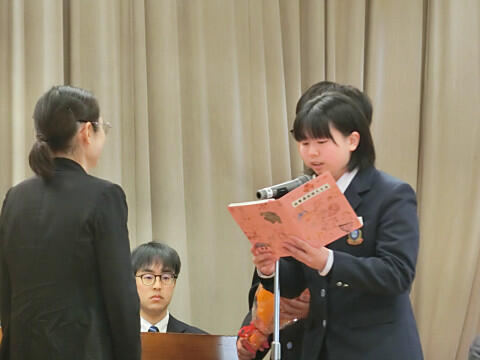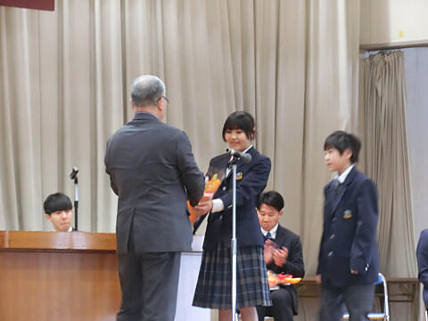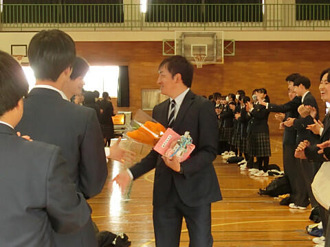 生徒代表から、手紙と花束の贈呈です。