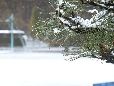 今日は、季節外れの大雪になり、登校時刻を遅らせて、10時登校になりました。水分の多い雪でシャーベット状でした。校庭の様子や校舎から見る町並みを撮影してみました。
